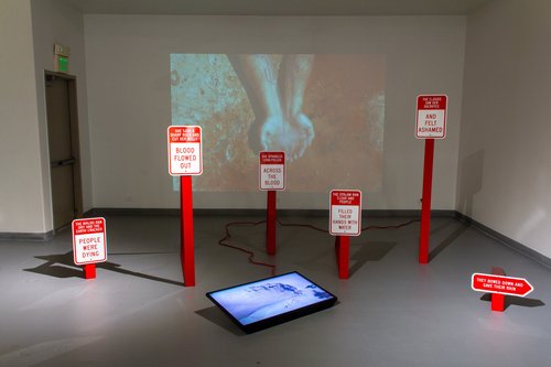 JOYSOME consists of fifty images selected from hundreds of responses to a call for work on the theme of joy. Submitted by artists and non-artists alike, the works in this exhibit span a range of disciplines and affective registers associated with joy— Ecstasy, Transcendence, Sadness, The Fear of Joy, Anger, Mania, Euphoria, Toxic Positivity, The American Dream, The Pursuit of Happiness, Masochism, Selflessness, Success, Sacrifice, Divination, Cuteness, The Sublime, Altruism, and Peace. The selected images are printed on flags and exhibited between Dairy Arts Center and East Window.